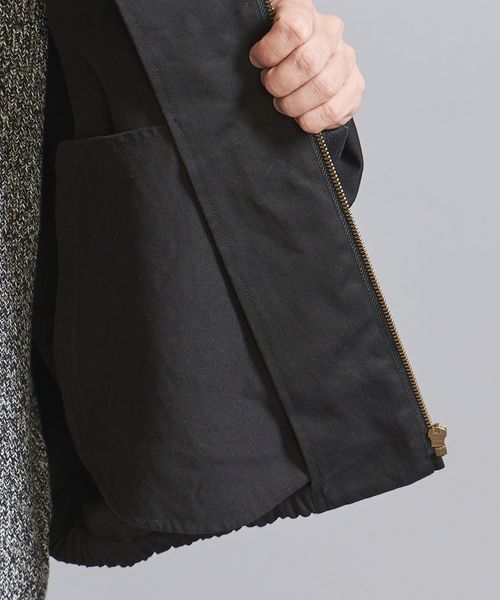 形は身幅たっぷりで、袖口・裾周りはゴムシャーリング仕様で丸みのあるブルゾン型となっています。
