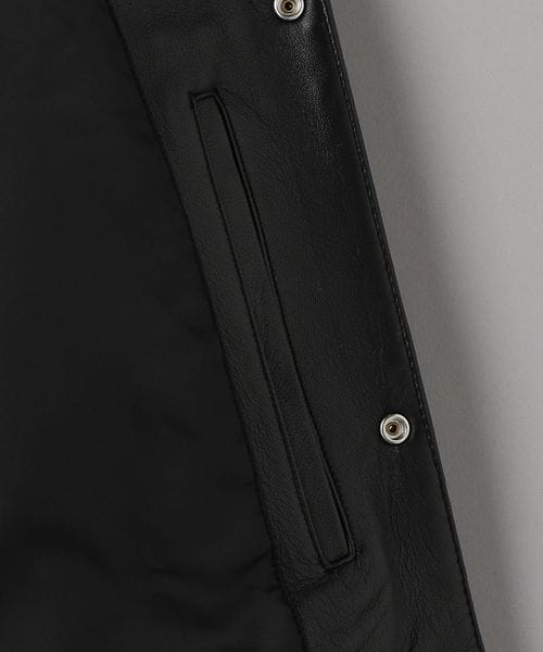 レザーの上品さとコーチジャケットのカジュアルさをミックスした一着。