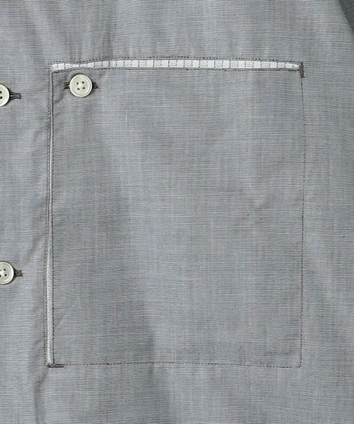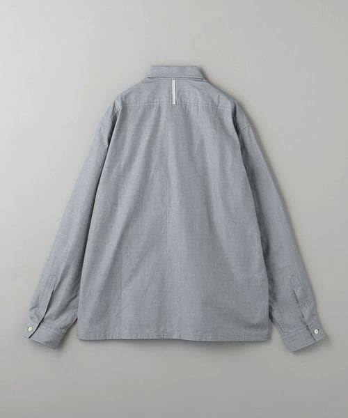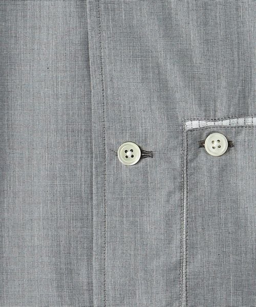 一見無地ライクに見えますが、非常に細かいボーダー柄でニュアンス感のある表情の生地が特徴のシャツ。