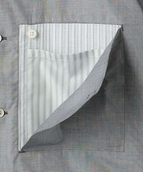 胸元に配されたポケットは、中にポケットが隠れており、さらにポケット内側のストライプ柄がアクセントに。