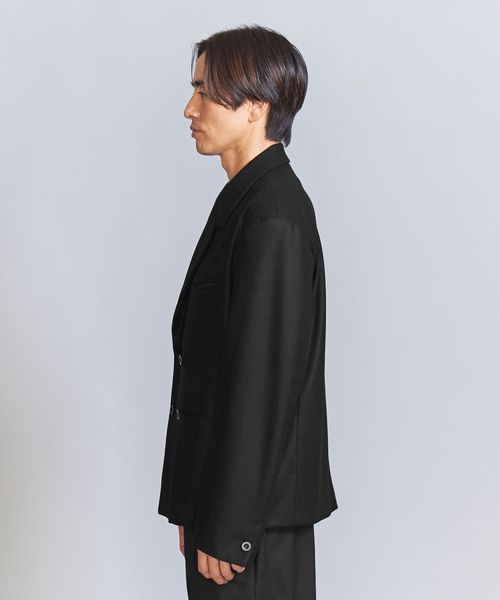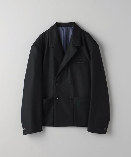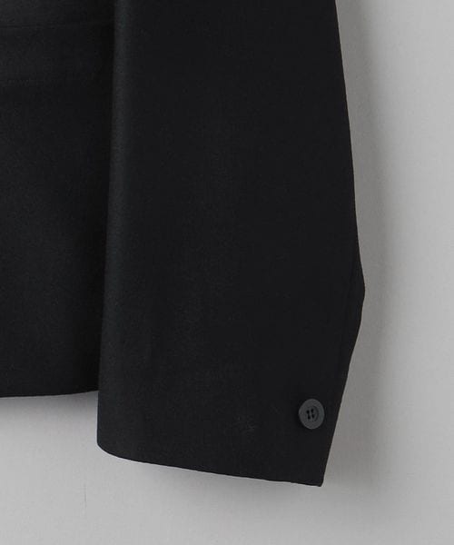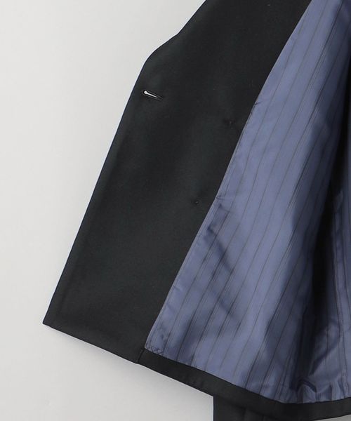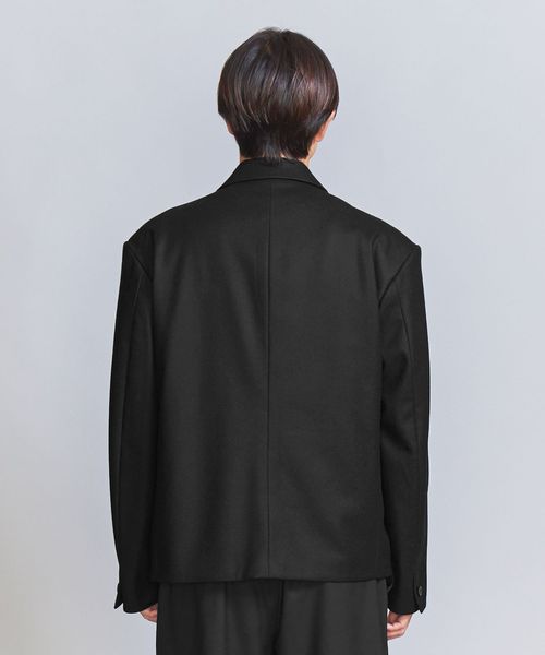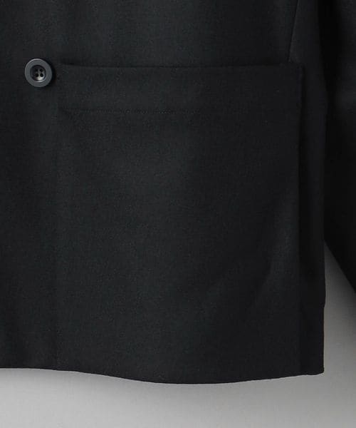 秋冬らしい温もり感のある生地を使用したショート丈ダブルジャケット。