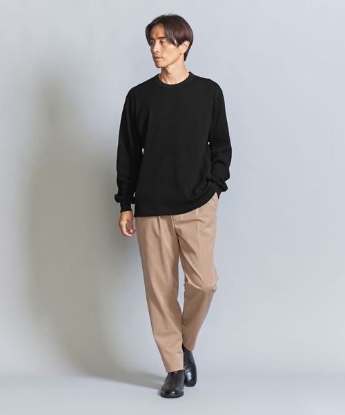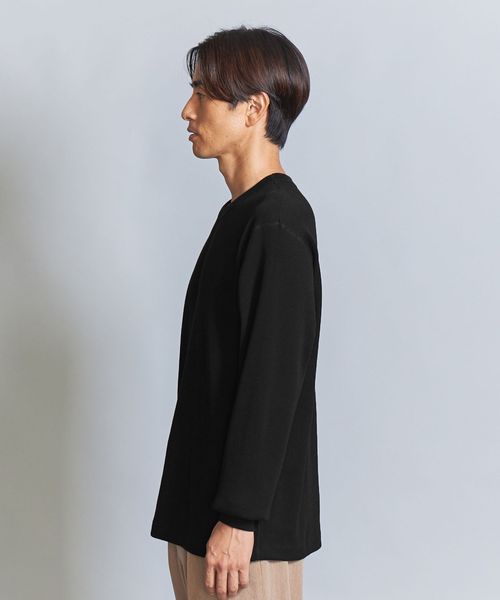 カジュアルな印象のサーマルTを、クリーンな表情の生地を使用することで品よく仕上げました。