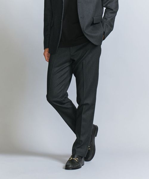上品でスマートなルックスのスリムシルエットのスラックス。