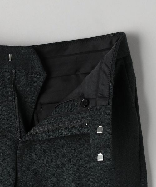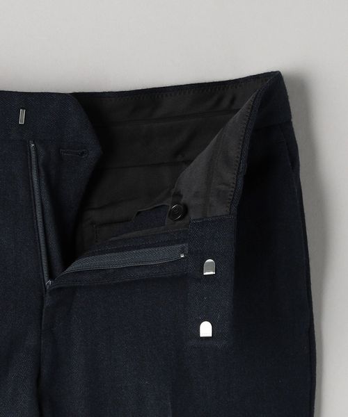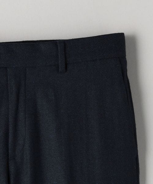 ノータックで浅めの股上なので腰周りもすっきりとした印象に。