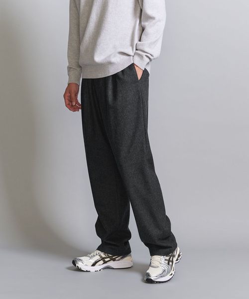 秋冬らしい温もり感のある生地を使用したイージーパンツ。