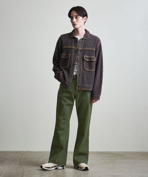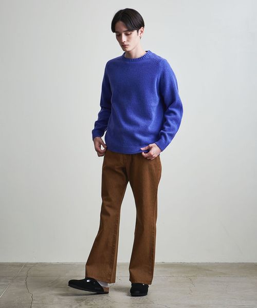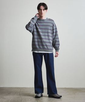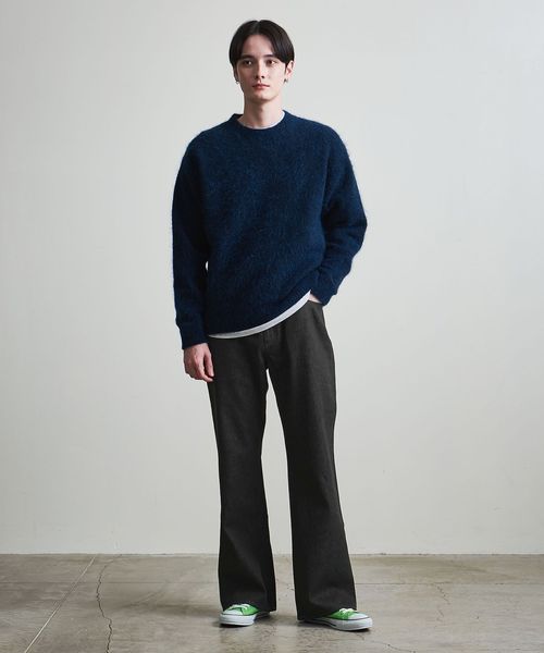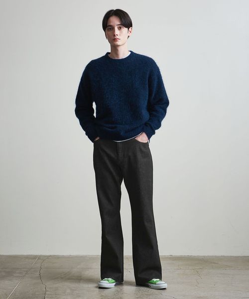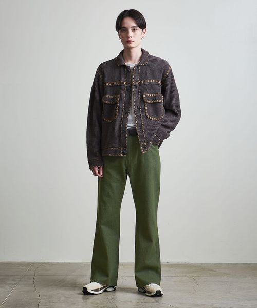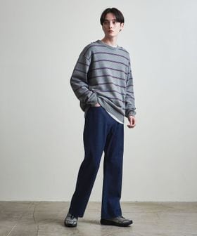 シンプルにスウェット合わせもいいですが、シャツと合わせてきれいめスタイルや、古着コーデなど幅広いスタイリングとの相性も良く、靴はスニーカーはもちろんのこと、ブーツの合わせもおすすめです。
