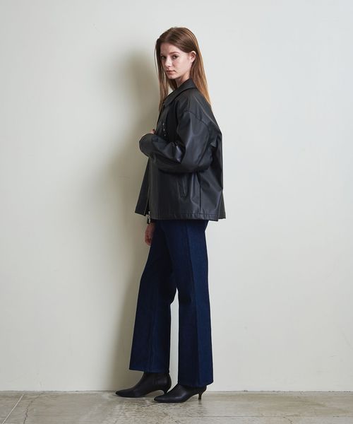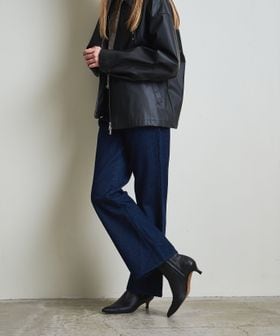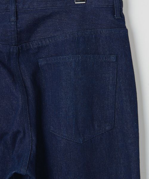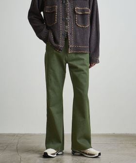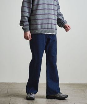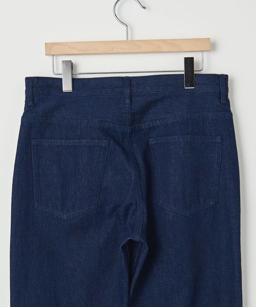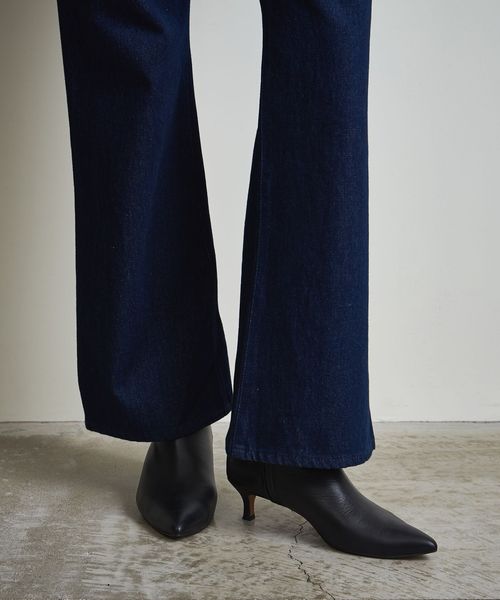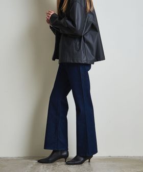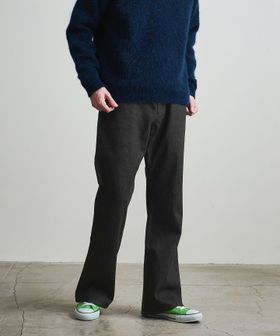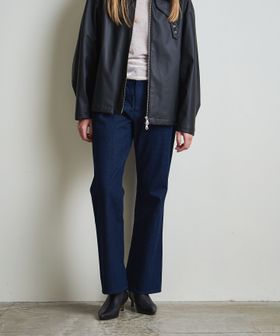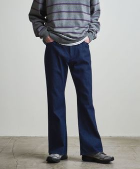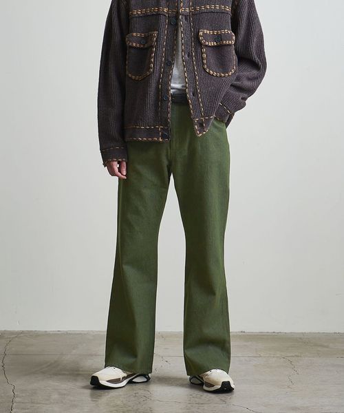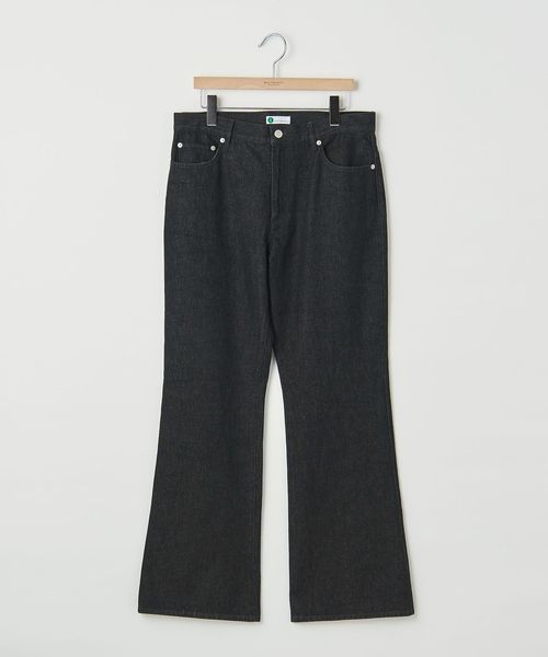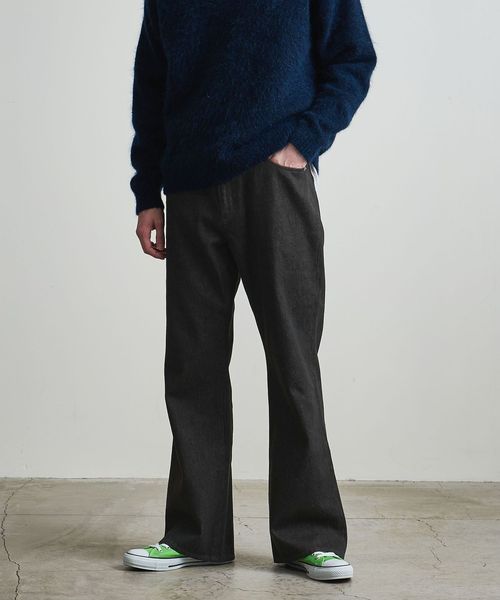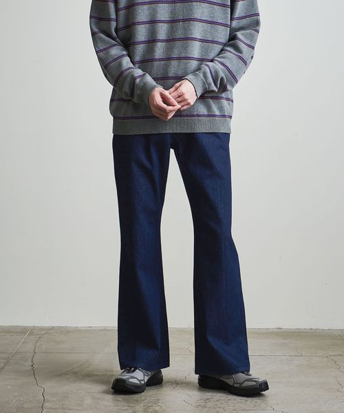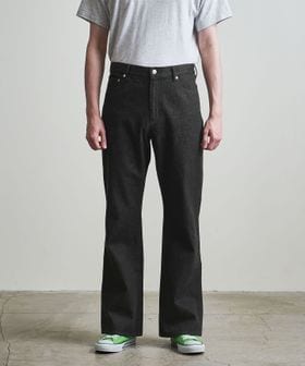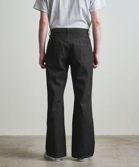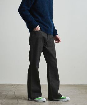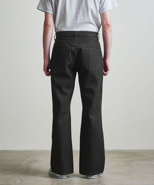ベーシックな5ポケット型ですが、太ももまわりは程よい太さで絶妙に裾に向かって広がっているセミフレアシルエット。