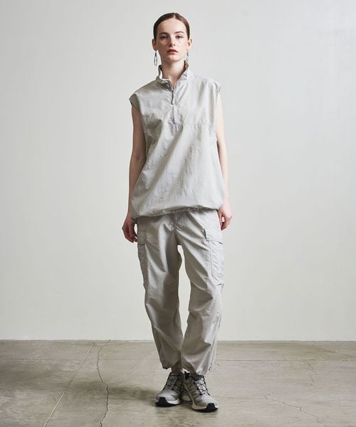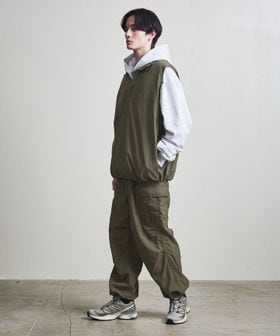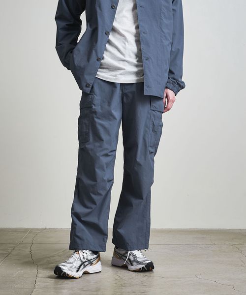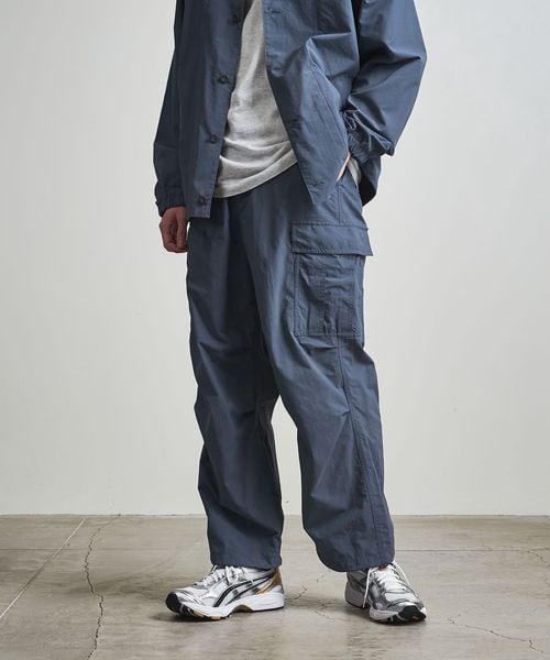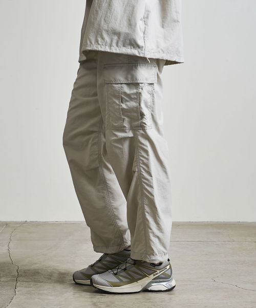 コットンのような見た目とタッチ感が特徴で、リップストップの組織感があることでこなれ感がありナイロン素材の軽さはありつつも、ボリュームのあるシルエットも綺麗にでます。