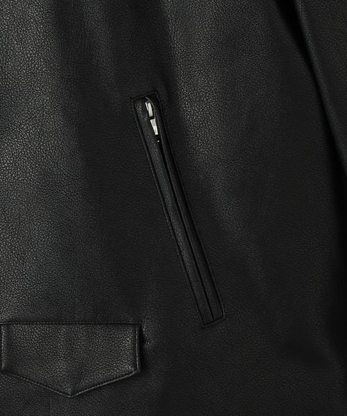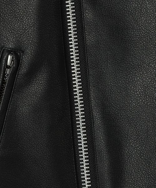 まるでレザーのようなポリエステル素材で制作されたライダースジャケット。