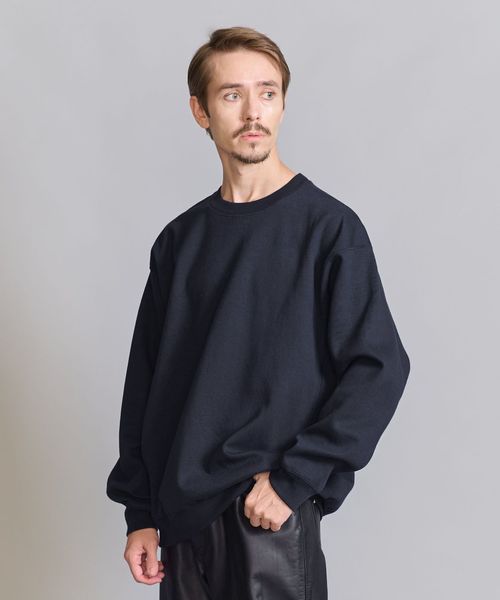 どんなアイテムにも合わせやすい、ミニマルなデザインのクルーネックスウェット。