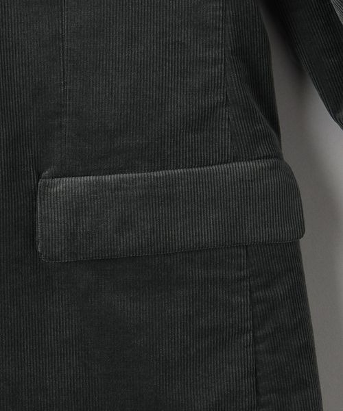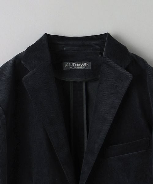 秋冬の季節感溢れるコーデユロイ素材のスタイリッシュなきれいめ2ボタンジャケット。