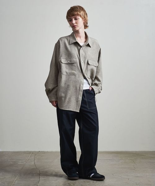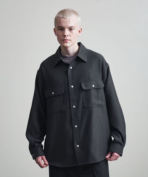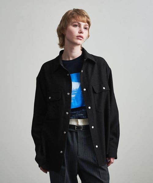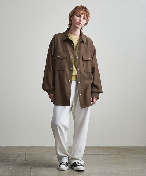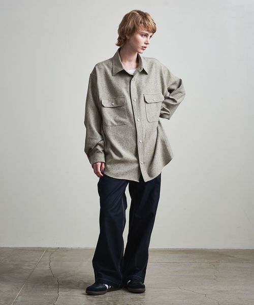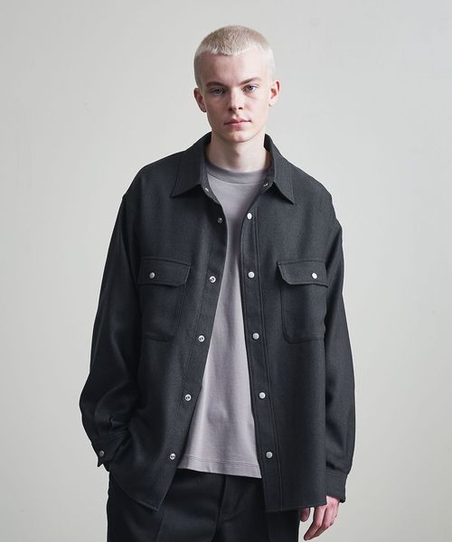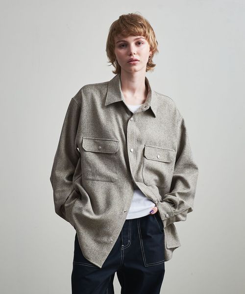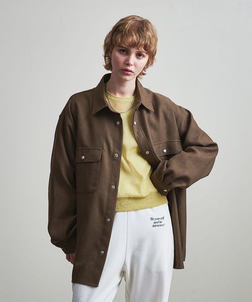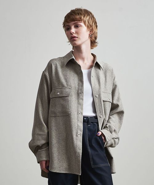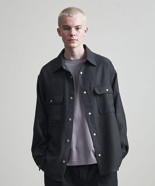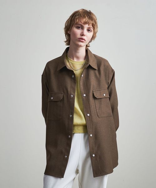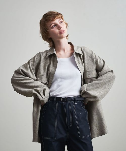 ツイード調見えするポリエステル素材の主役級なシャツジャケット
