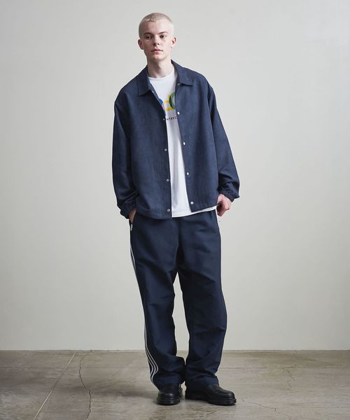 シャツやニットを合わせて綺麗めなスタイリングはもちろん、スウェットやパーカーなどでカジュアルに合わせることも可能です。