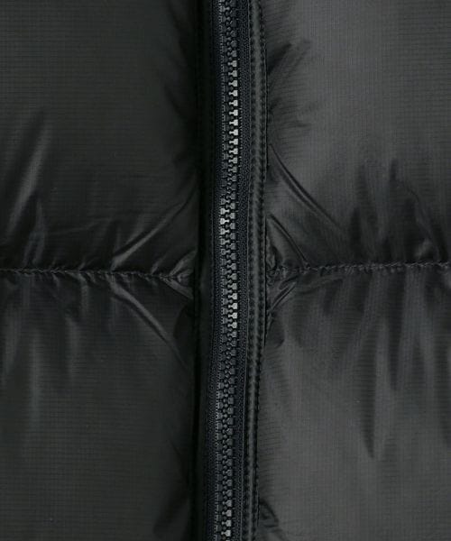 左裾付近にあしらったブランドロゴがアクセントのダウンベスト。