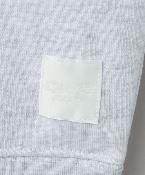 「VELCA」のタイプフェイスをよりエッジィに再構築した<ONE by VELCA>の象徴的ロゴを胸元と背面に配したクルーネックスウェット。