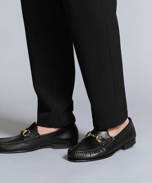 後ろウエストのみゴムシャーリングでフィット感を向上させたノータックスラックスデザイン。