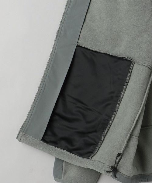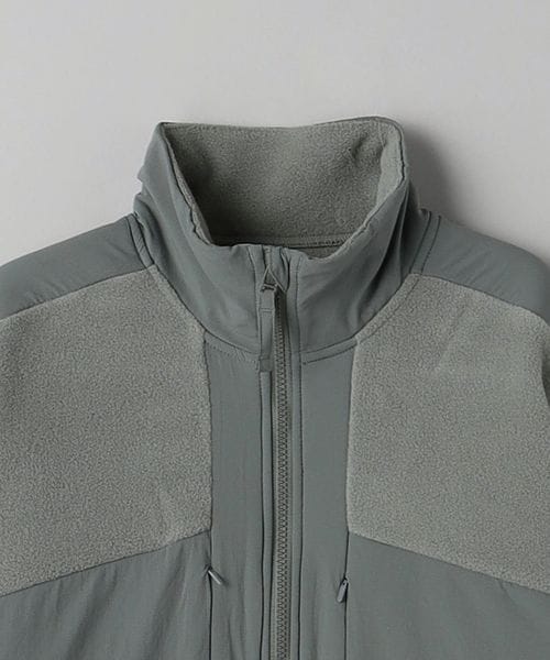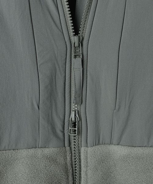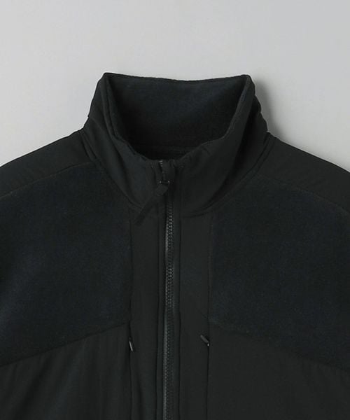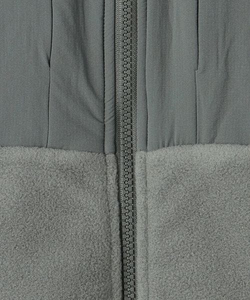 フリースジャケットの弱点を補うように、リップストップ生地をマッピングしたハイブリッドなジップアップジャケットです。