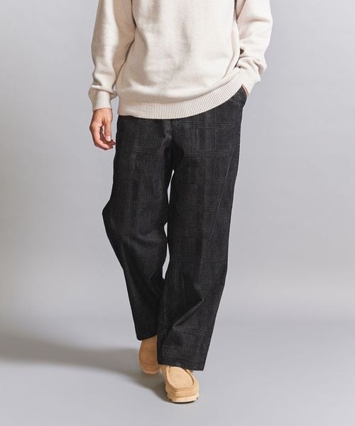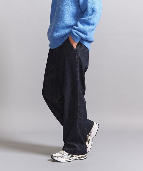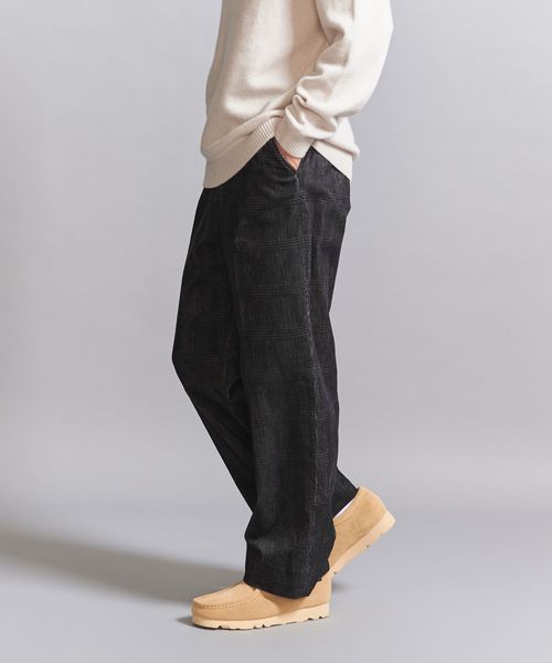 キレイ目ウールスラックスに多くみられる、冬の定番グレンチェック柄をコーデュロイ生地に落とし込み、柄の主張を強くしすぎず、幅広いスタイルに馴染みやすいデザインのパンツです。