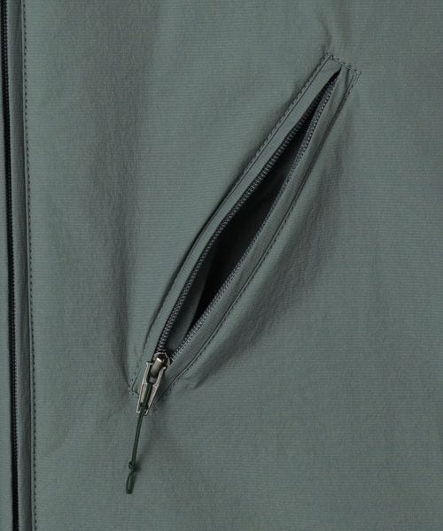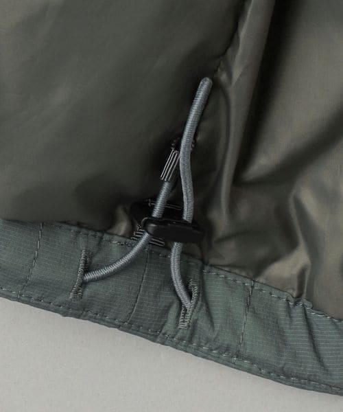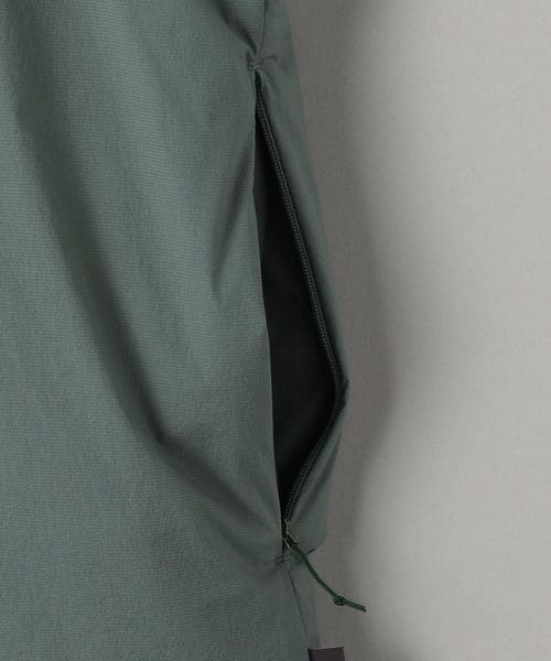 脇縫目のファスナーポケットは前後2方向に手入れができ、裾はドローコードで調節可能です。