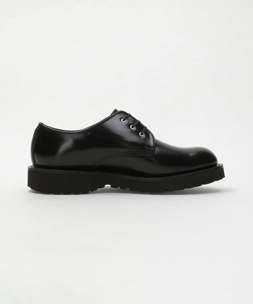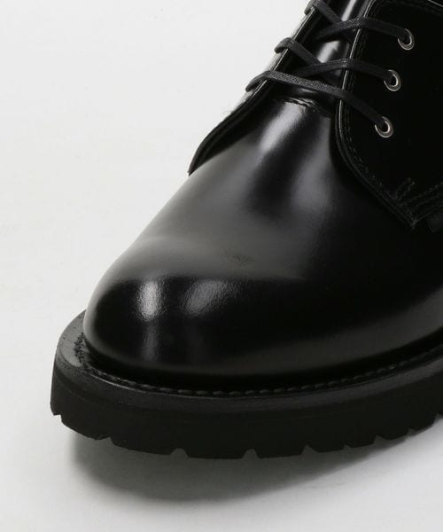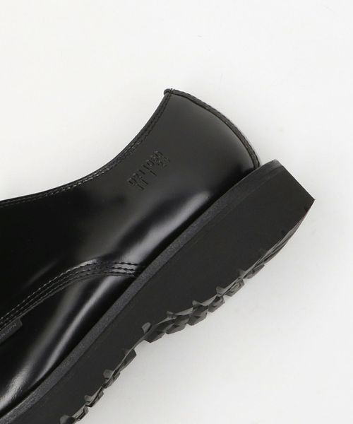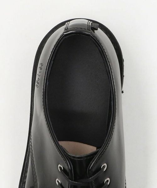 ロウ引きのシューレースにフラットなアイレットを組み合わせ、クラシックな印象ながらすっきりとした3ホールをデザイン。