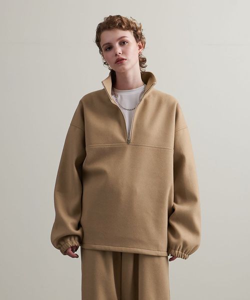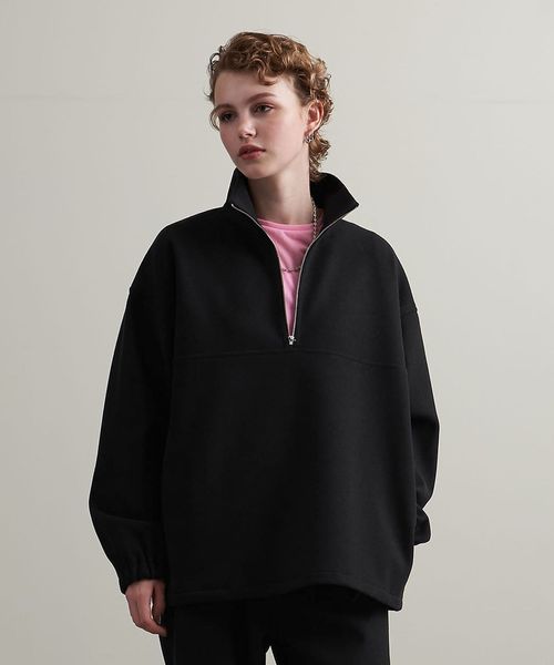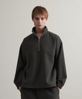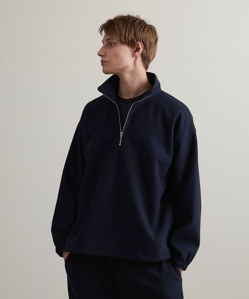 スムース フリース ハーフジップ プルオーバー