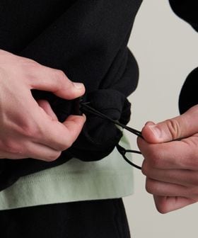 スウェットやニットの上からも着用可能な適度なゆとりがあります。