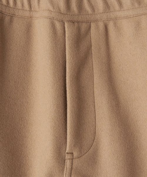 ヒップからワタリにかけてボリュームがあり、ゴムシャーリングが入った裾口に向かってアウトカーブしたテーパードしたシルエット。