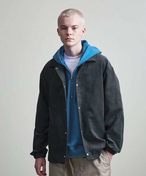 幅広いシーズン活躍すること間違えなしの起毛感のあるコーディロイのコーチジャケット
