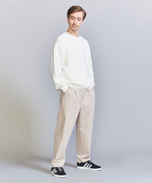 ドロップショルダーで身幅にゆとりがありリラックス感漂うシルエットは、抜け感があり「今」っぽい雰囲気の着こなしにまとまります。