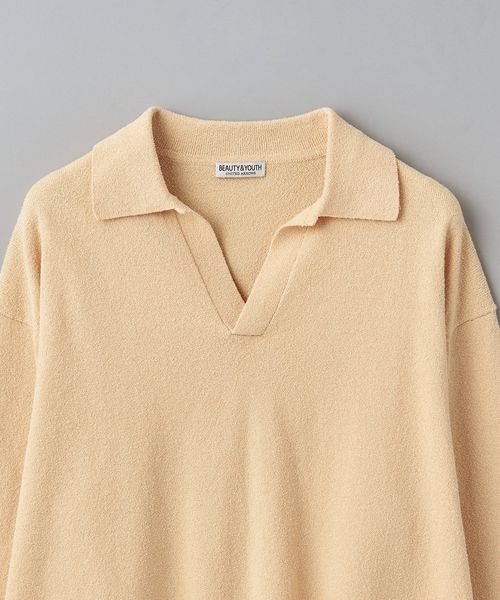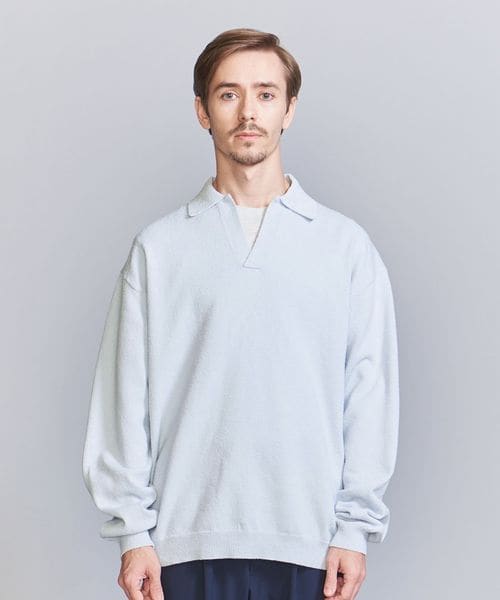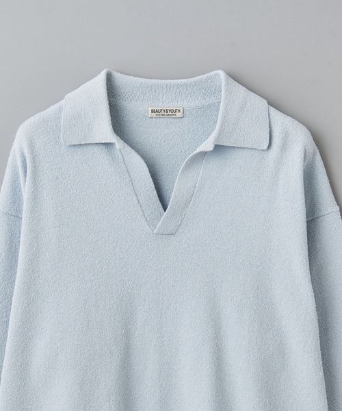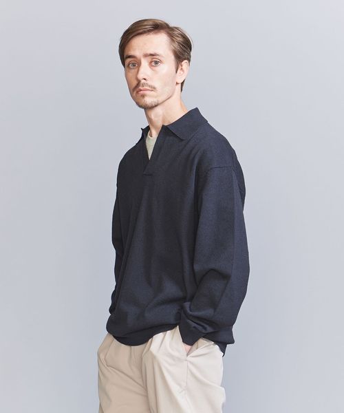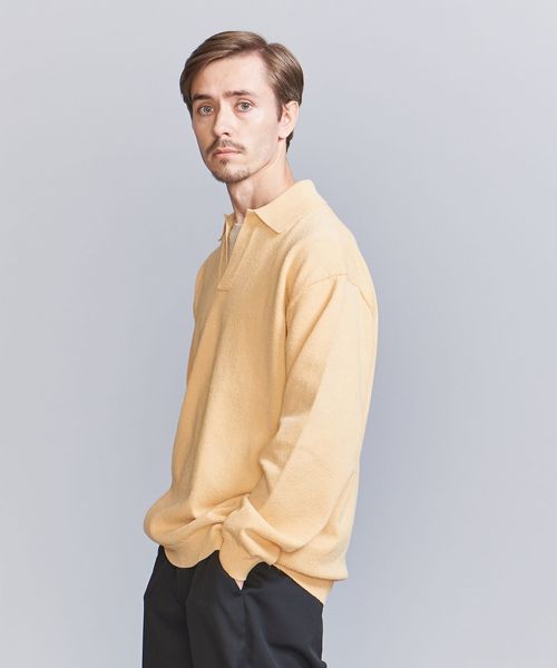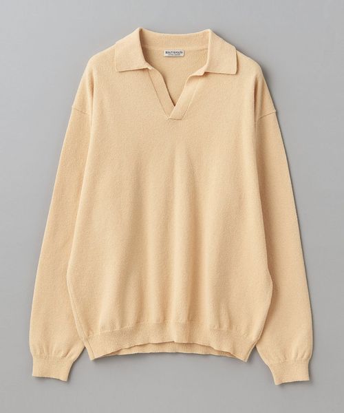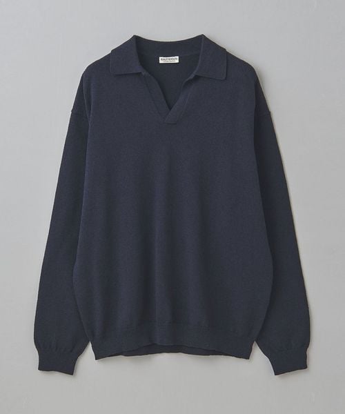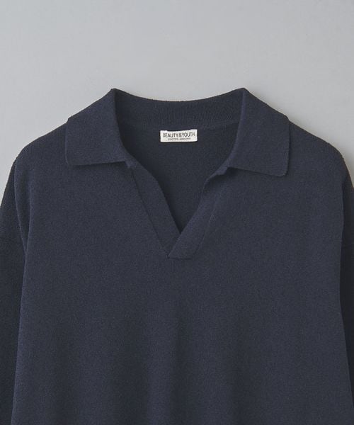 多彩な着こなしに合わせやすい、シンプルなデザインのスキッパー型ポロニット。