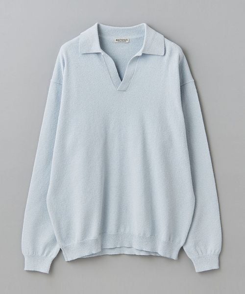 ボタンレスのスキッパーデザインで、上品さとラフな抜け感を併せ持つアイテムです。