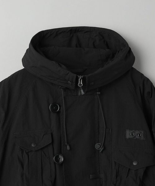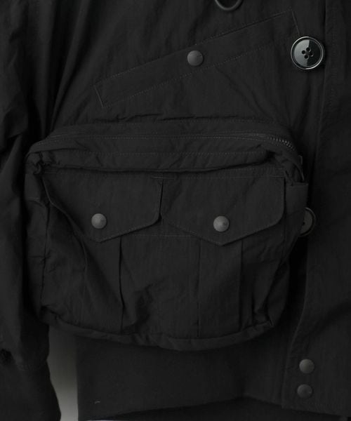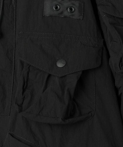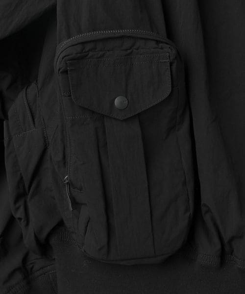 N-2Bフライトジャケットの前立てのディテールやフードのデザインに大小様々なフィッシングポケットワークを追加。