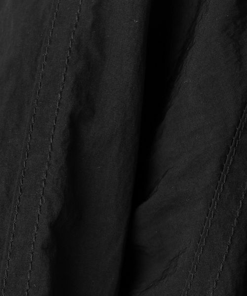 ミリタリーのディテールでもある前振りの袖がデザインアクセント、アクションプリーツをプラス。