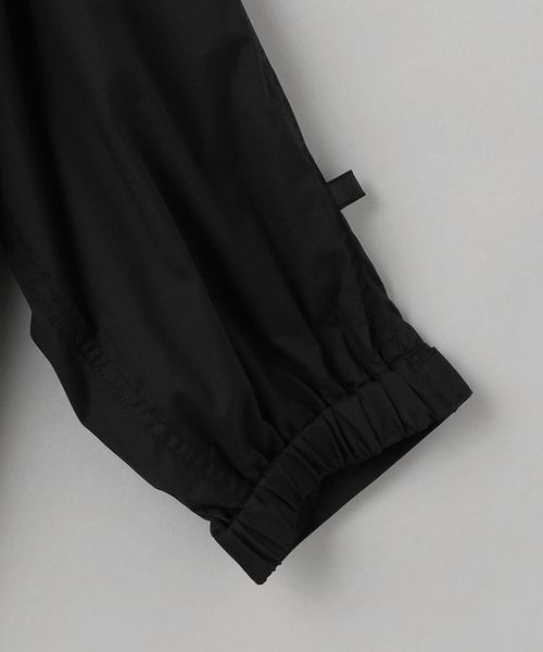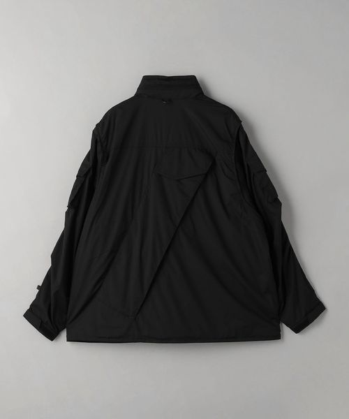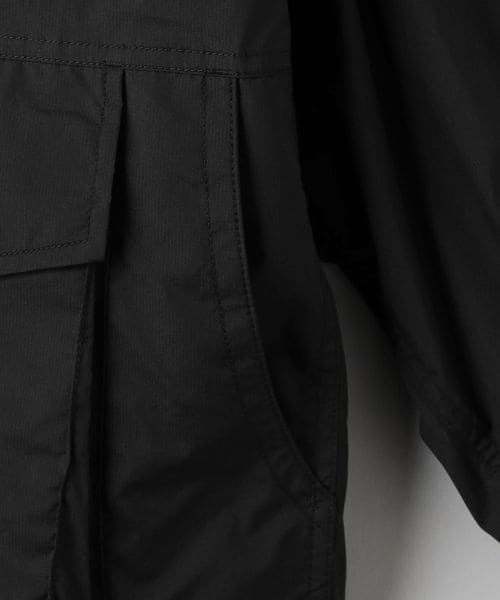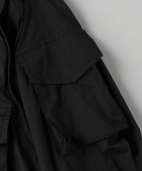ミリタリーのディテールでもある前振りの袖がデザインアクセント、アクションプリーツを加え、袖口も調整可能に。