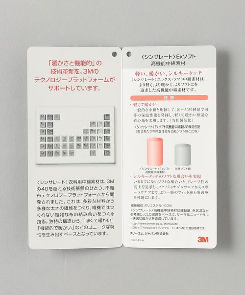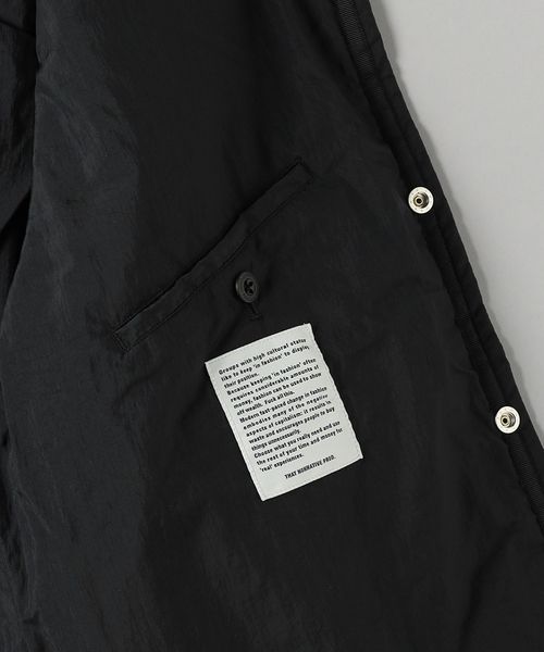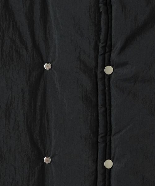 フロントのスナップボタンをダブル幅で設けることにより、アウターの中に着込む際にコンパクトな着用が可能となっています。