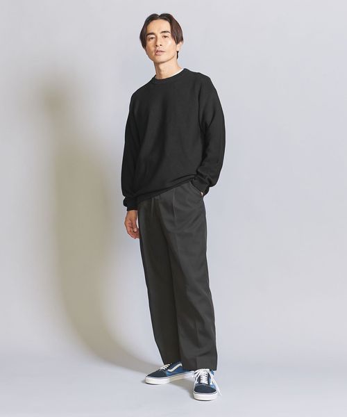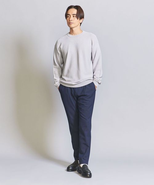 様々な着こなしにマッチする、シンプル・ミニマルなデザインのクルーネックニット。