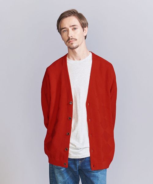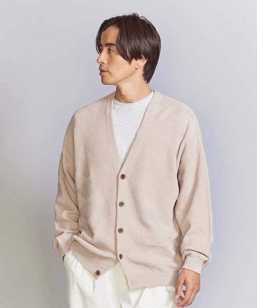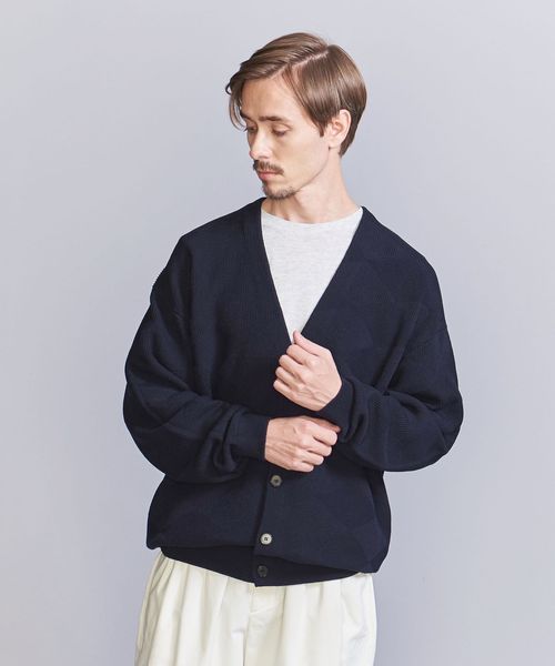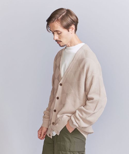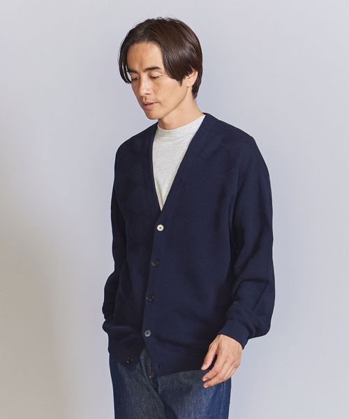 さりげないアーガイルの編み柄が目を惹くため、シンプルな合わせでコーディネートの主役となる一枚。
