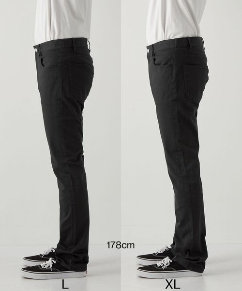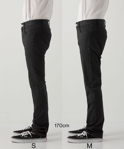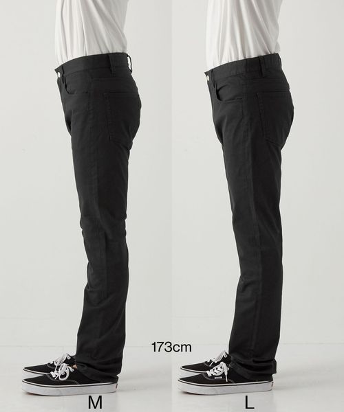 細身シルエットながら、適度に伸縮するポリウレタンの繊維を混ぜた素材でストレッチがあり、はき心地のよさも魅力。