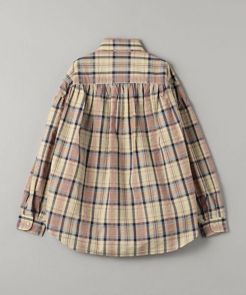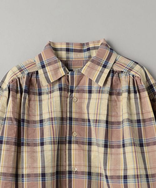 リラックス感のあるオープンカラーと、肩回りからバックヨークにかけて施されたギャザーによって生まれる独特のラウンドしたシルエットが特徴の定番シャツ。