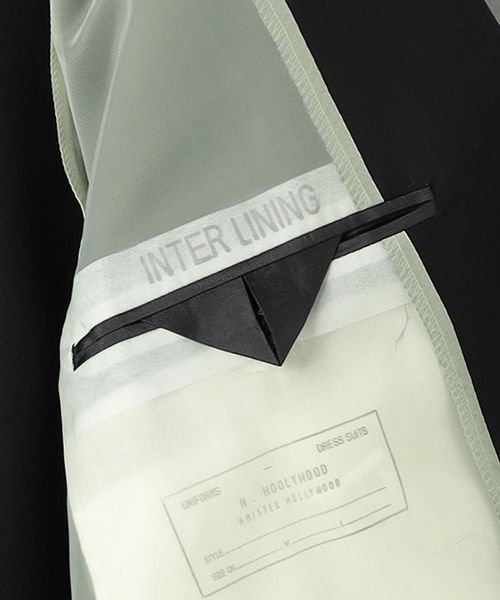 フロント、内ポケットにはオリジナルの水牛ボタンを使用し、左袖には「N.HOOLYWOOD COMPILE」のアイコンであるブラックのブランドネーム付き。