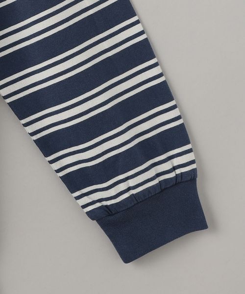 白色で配された胸元のブランドロゴがさりげないデザインの長袖ボーダーTシャツです。
