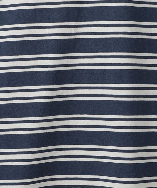 カジュアル過ぎないボーダーピッチはどこか品があり、トリムカラーの首元と袖もアクセントに。