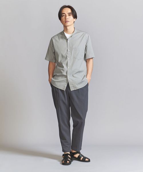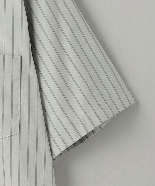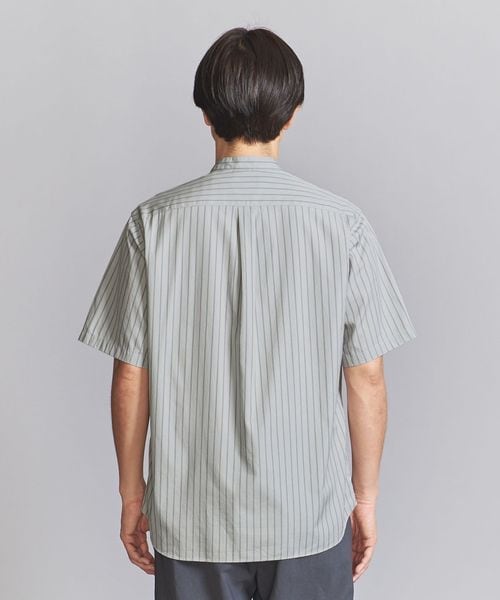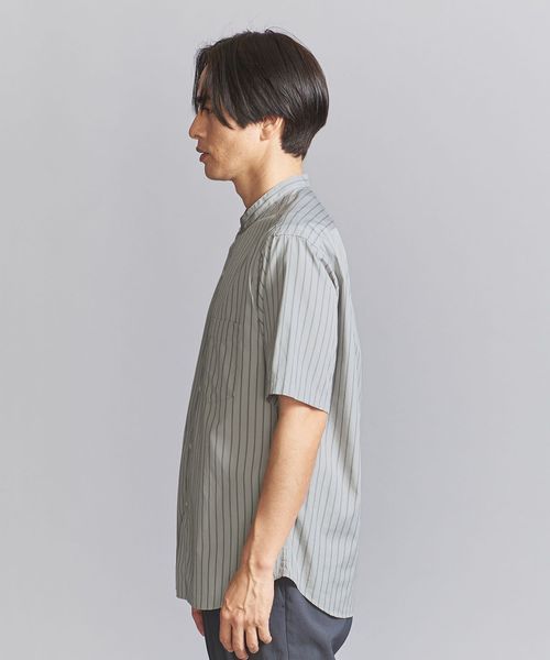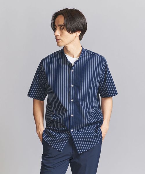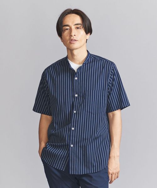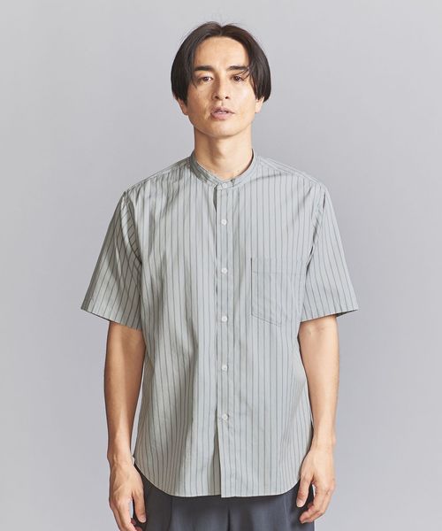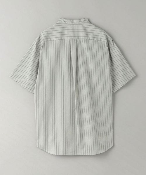 トレンドに左右されない、ベーシックなデザインのストライプ柄バンドカラーの半袖シャツ。
