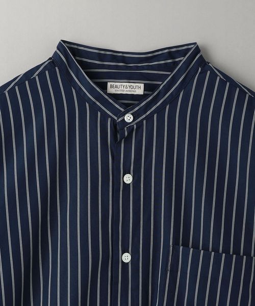 70/2 ブロード ストライプ バンドカラー リラックスレギュラー シャツ