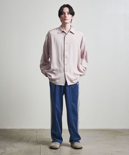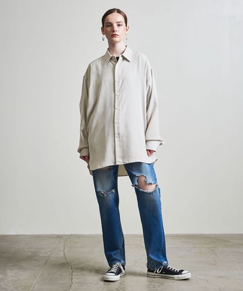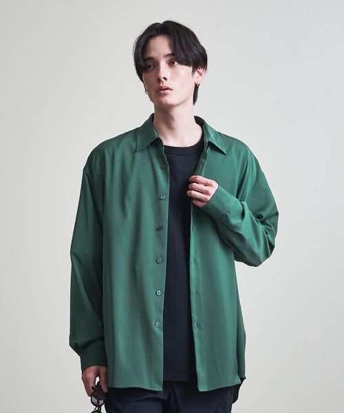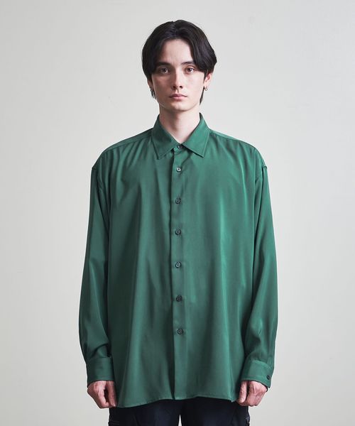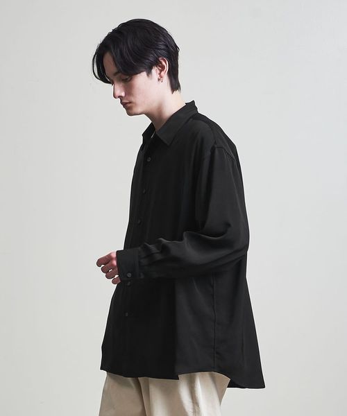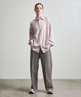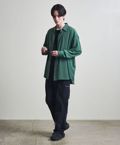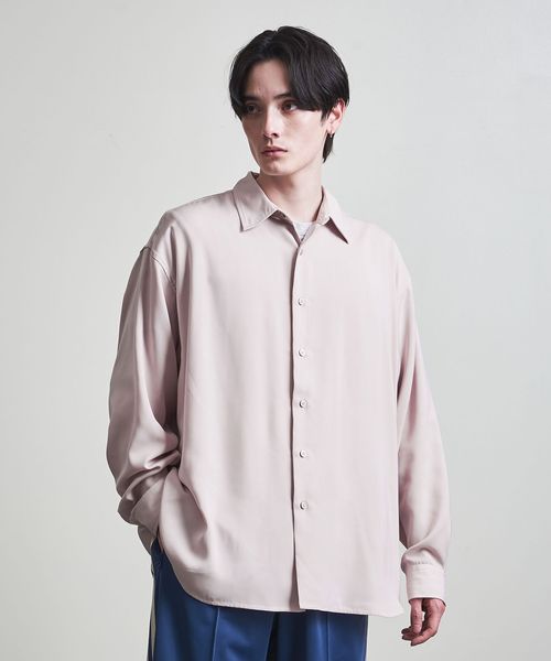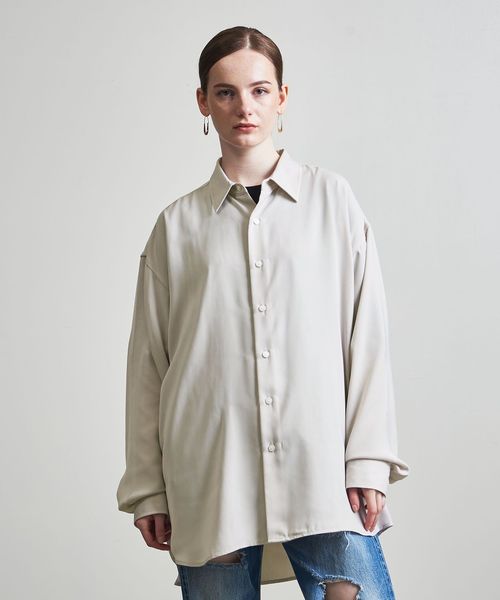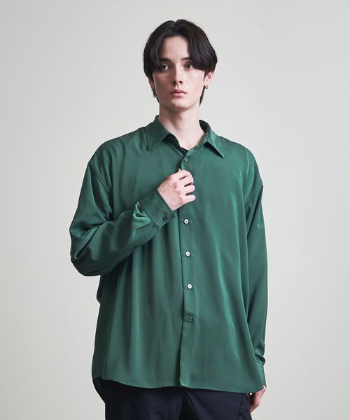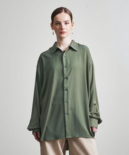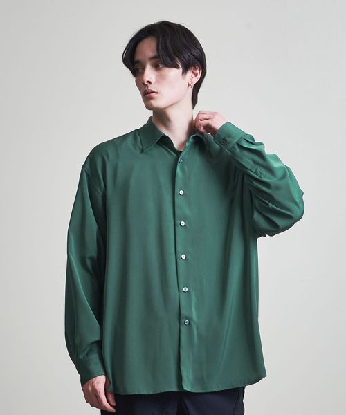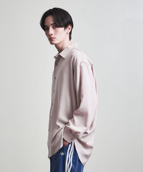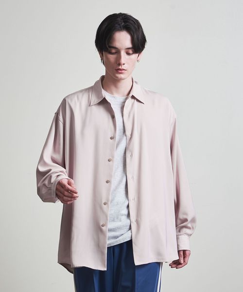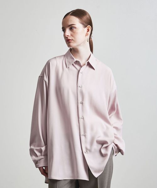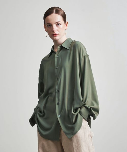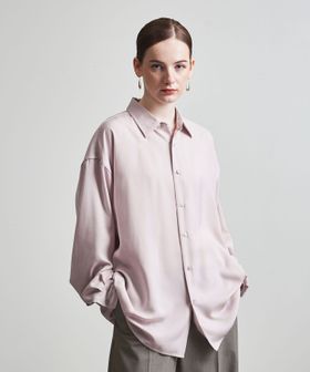 絶妙なオーバーサイズシルエットで着まわせるサテンドレープシャツ