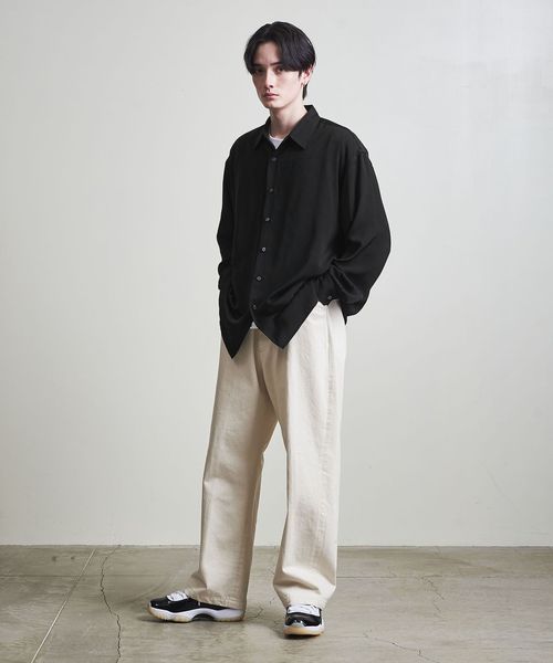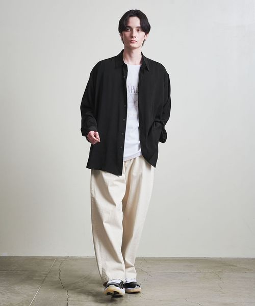 落ち感のある素材感と相まって、よりゆったりとしたシルエットを引き立てます。