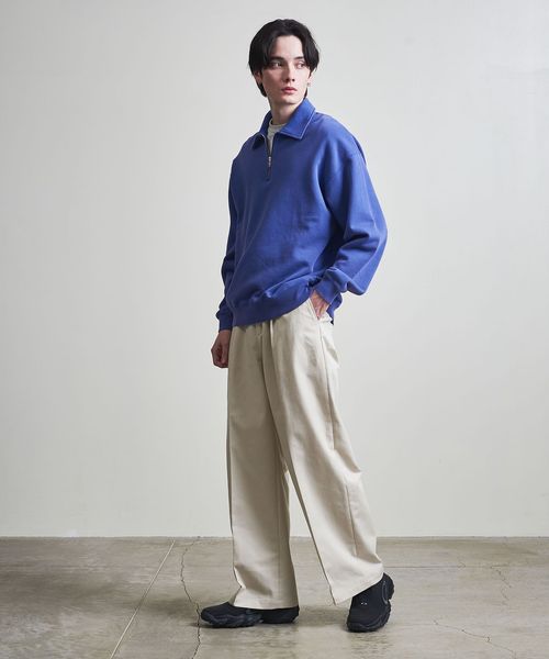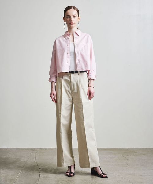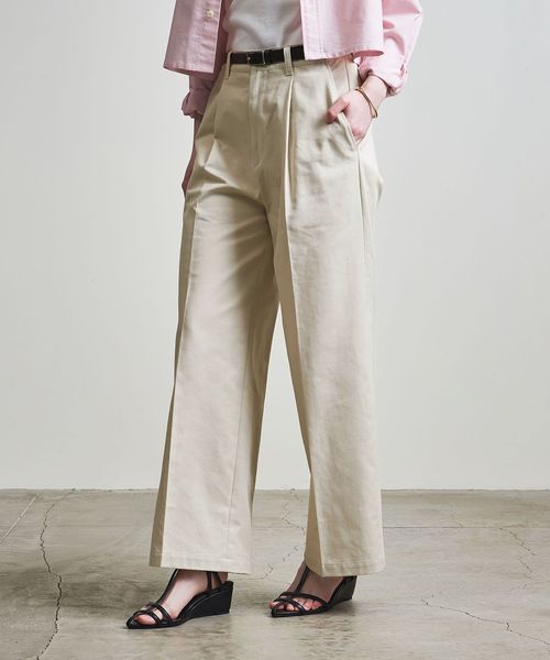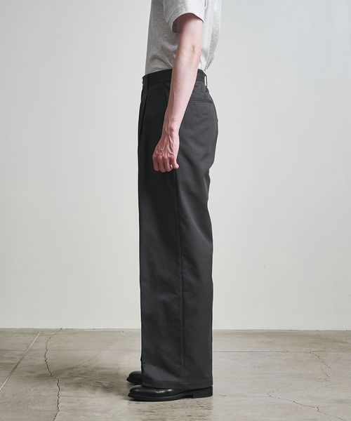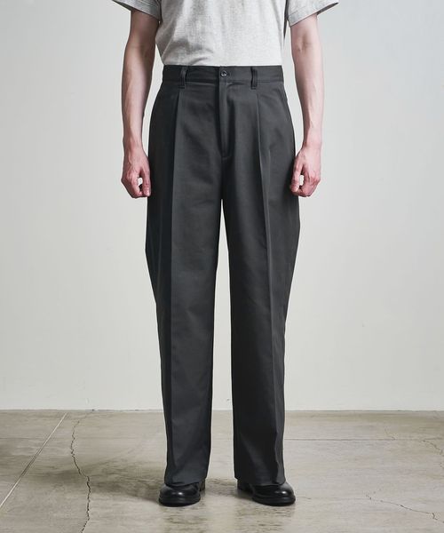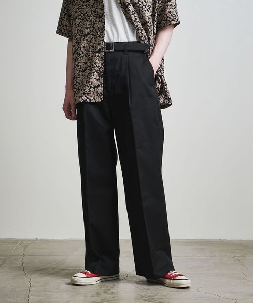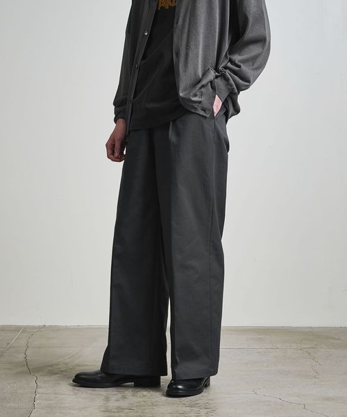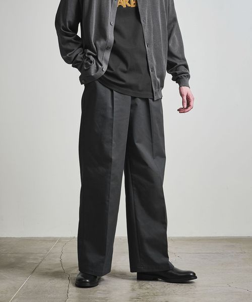 1タックの腰回りに、ワタリから裾までが太いバギーシルエットに仕上げてます。