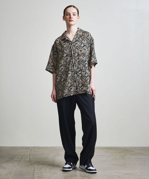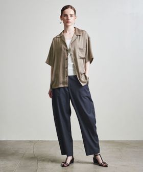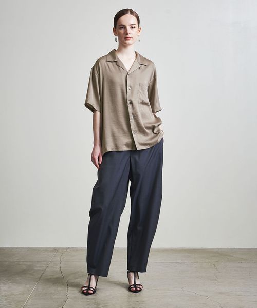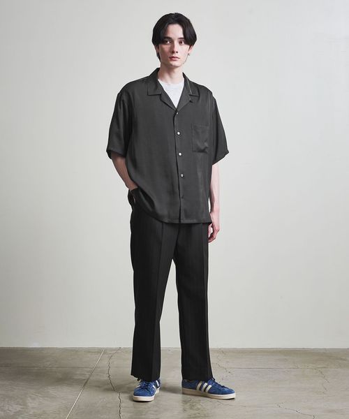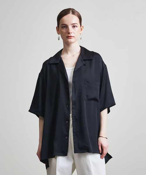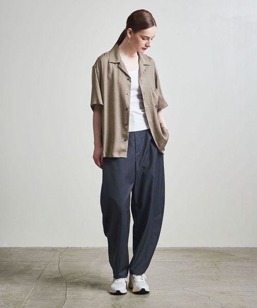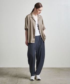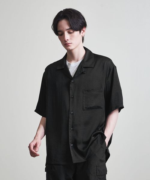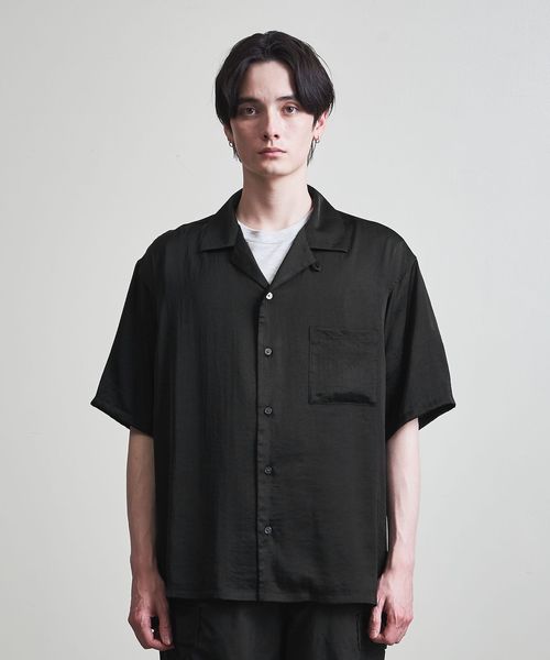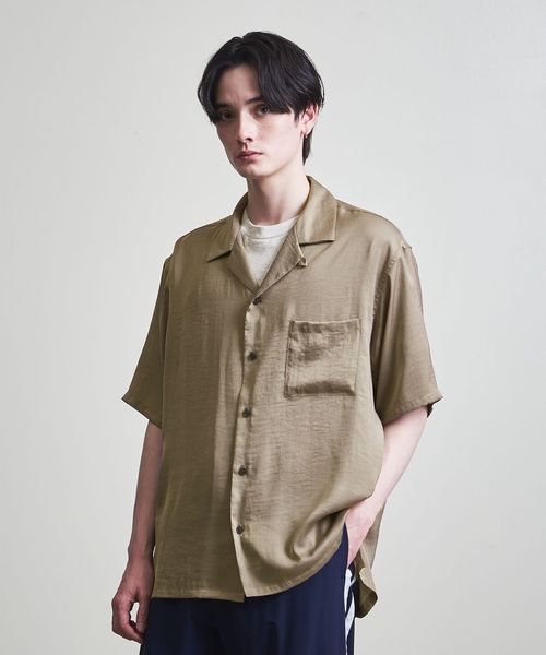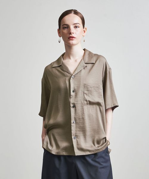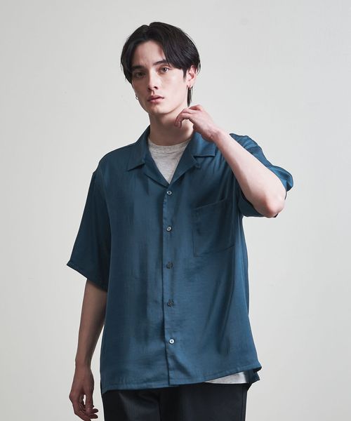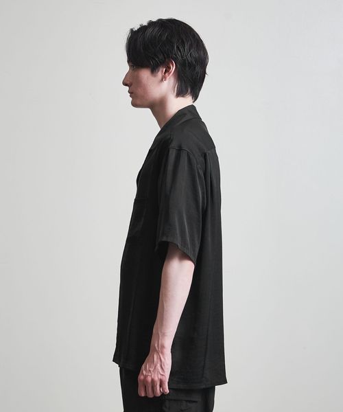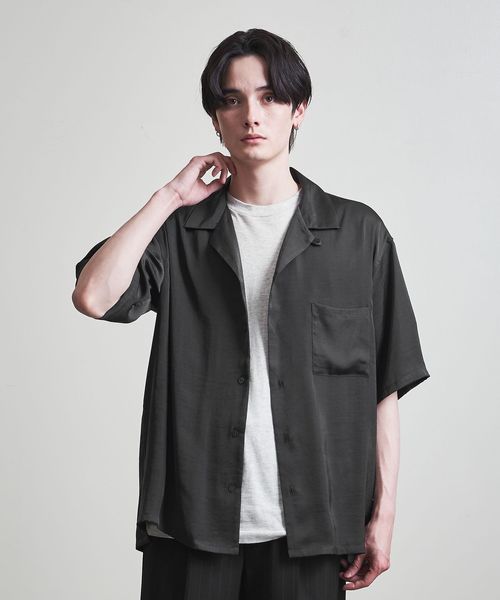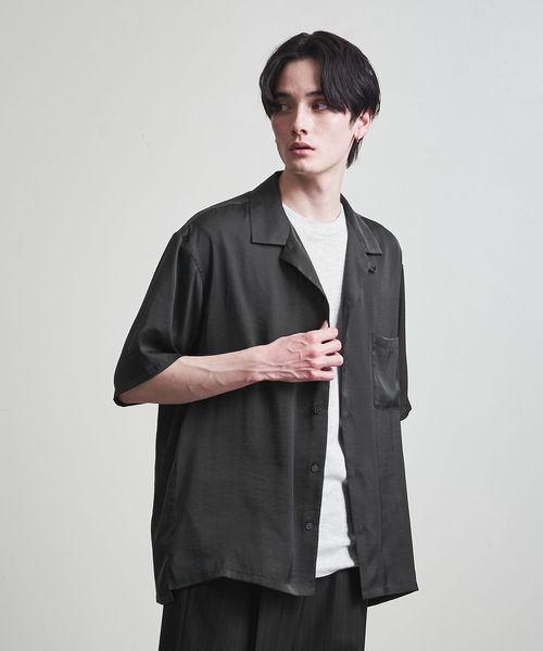 程よくゆったりとしたシルエットの着まわせるドレープオープンカラーシャツ
