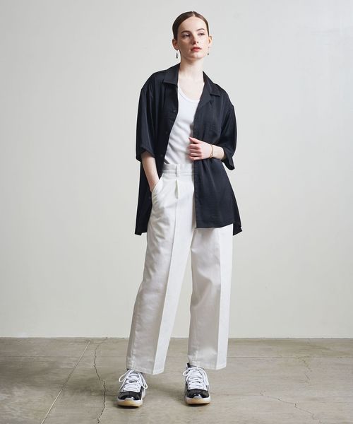 落ち感のある素材感と相まって、よりゆったりとしたシルエットを引き立てます。