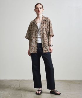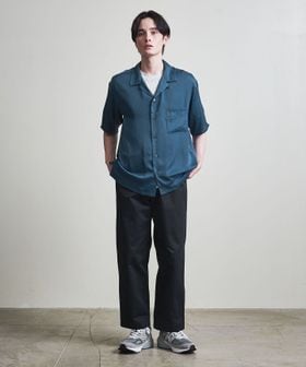 シャツとして着こなしももちろんのこと、前の釦をあけてTシャツと合わせのレイヤードスタイルもおすすめです。
